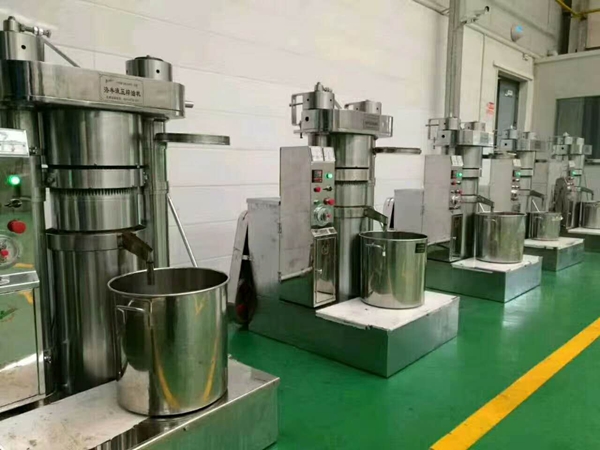 4、榨油機采用液壓與螺旋冷榨機,該機產量可大小調節、殘油低,生產效率高。